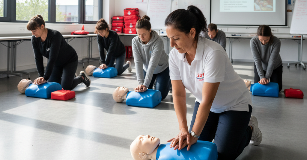 L'apprentissage de la réanimation cardio-pulmonaire et de l'utilisation du défibrillateur représente un module central de la formation. Les participants s'entraînent sur des mannequins professionnels et découvrent comment adapter leur intervention selon l'âge de la victime et les circonstances. Ces gestes essentiels peuvent faire la différence entre la vie et la mort lors d'un arrêt cardiaque, dont la survie dépend de la rapidité d'intervention dans les premières minutes.