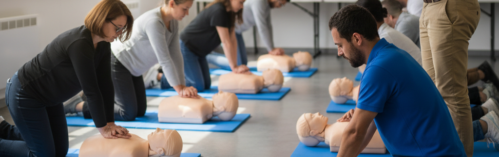 L'apprentissage de la réanimation cardio-pulmonaire constitue un élément central de la formation. Les participants s'exercent sur des mannequins pour maîtriser les compressions thoraciques et l'utilisation du défibrillateur automatisé externe (DAE). Ces gestes, pratiqués rapidement, peuvent faire la différence entre la vie et la mort en cas d'arrêt cardiaque.